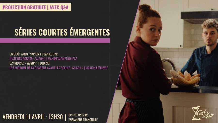 INFOS Les séries courtes émergentes mettent en lumière une nouvelle génération de créateurs et créatrices talentueux·euses, issu·e·s de divers horizons et porté·e·s par une envie commune d’innover et de raconter des histoires autrement. Ces séries sont le fruit du travail de cinéastes de la relève, qu’ils viennent d’écoles de cinéma reconnues, comme l’école KOURTRAJMÉ ou l’INIS, ou qu’ils se lancent sans soutien institutionnel, avec des moyens limités mais une créativité débordante. Deux séries de notre compétitions sont issus de la toute nouvelle compétition de séries du Nikon Film Festival, qui révèle des œuvres audacieuses et originales, portées par des cinéastes indépendants, un exemple marquant de cette effervescence. |
